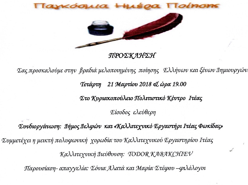 Πρόσκληση στην βραδιά μελοποιημένης ποίησης