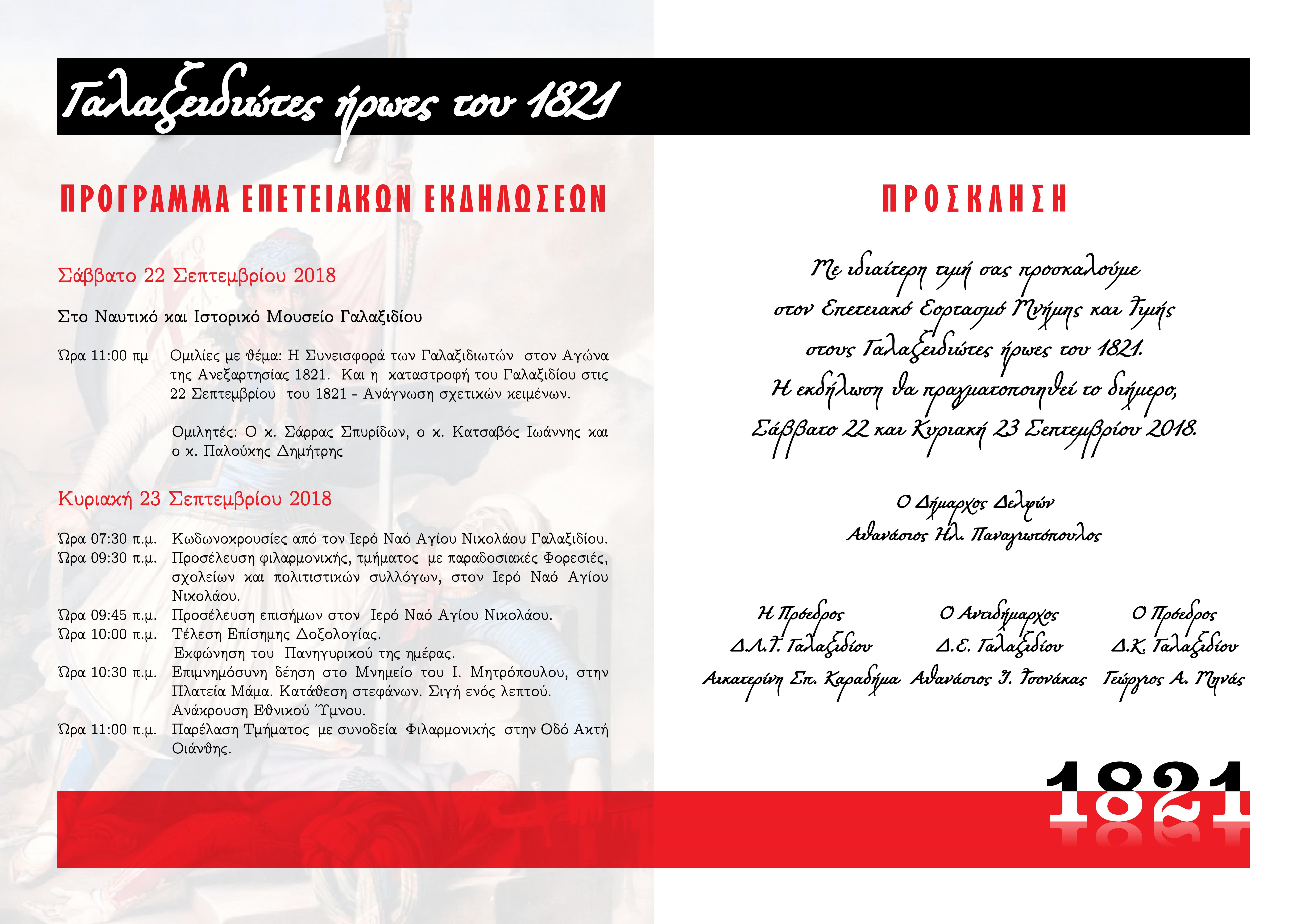 Ετήσιος επετειακός εορτασμός μνήμης και τιμής στους Γαλαξειδιώτες ήρωες του 1821