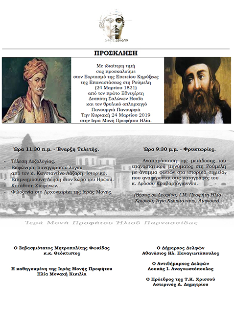 Πρόσκληση στον Εορτασμό της Επετείου Κηρύξεως της Επαναστάσεως στη Ρούμελη (24 Μαρτίου 1821)