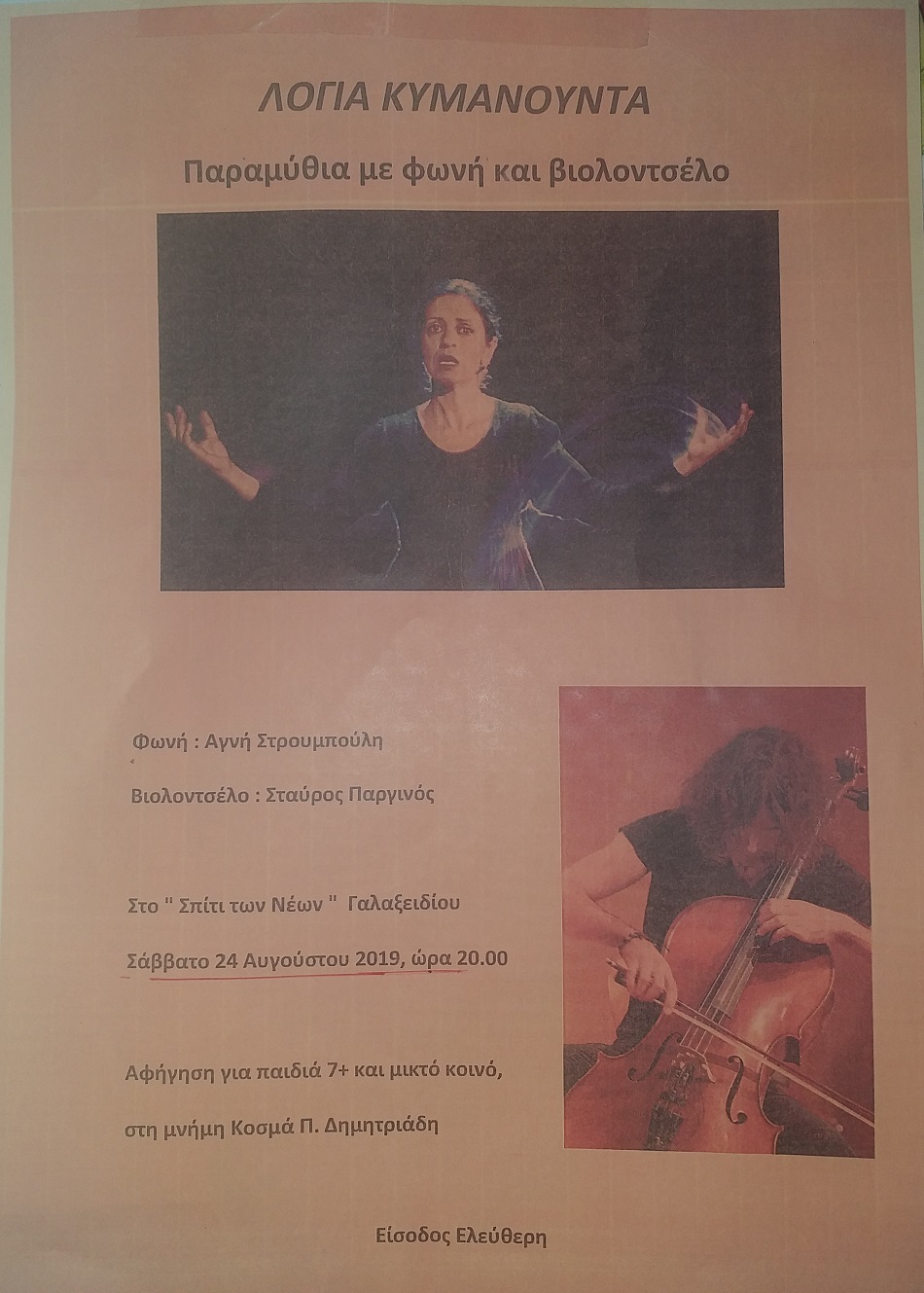 Εκδήλωση στο"Σπίτι Νέων" στο Γαλαξίδι ¨Παραμύθια με φωνή και βιολοντσέλο