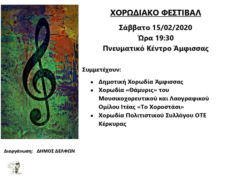 Πρόσκληση σε Χορωδιακό Φεστιβάλ- Σάββατο 15/02/2020 και ώρα 19:30