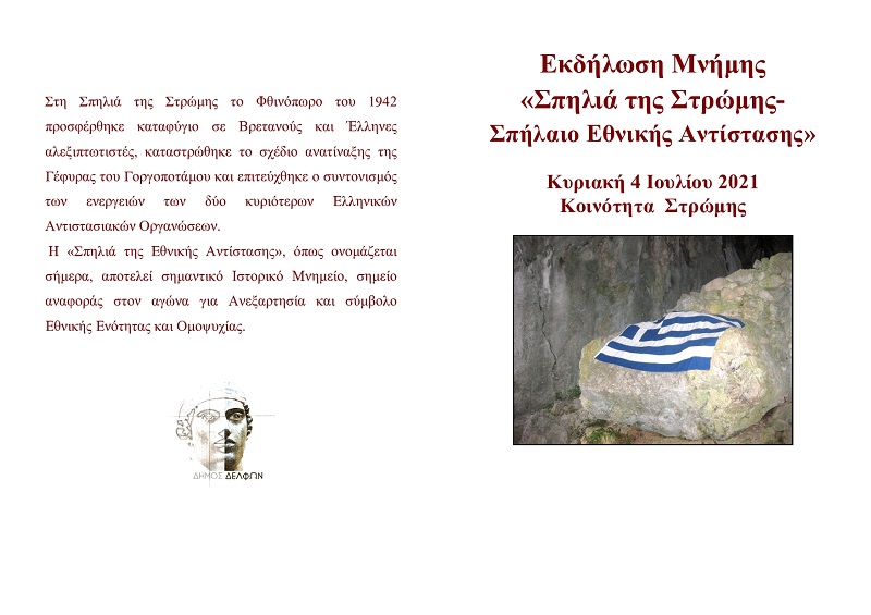 Εκδήλωση Μνήμης «Σπηλιά της Στρώμης- Σπήλαιο Εθνικής Αντίστασης»