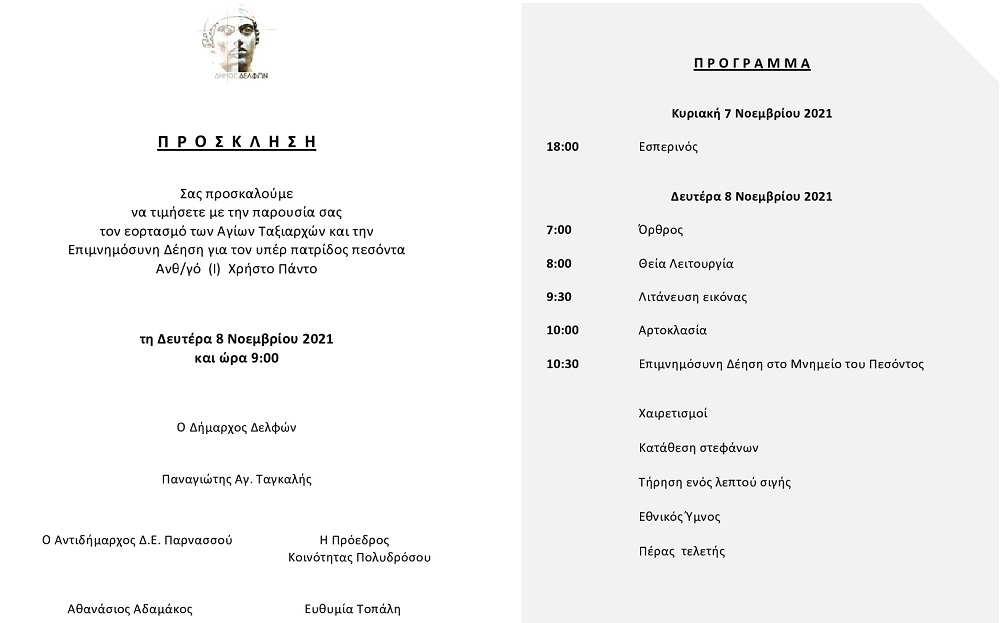 Εορτασμός Αγίων Ταξιαρχών και Επιμνημόσυνη Δέηση για τον υπέρ πατρίδος πεσόντα Ανθ/γό (Ι) Χρήστο Πάντο