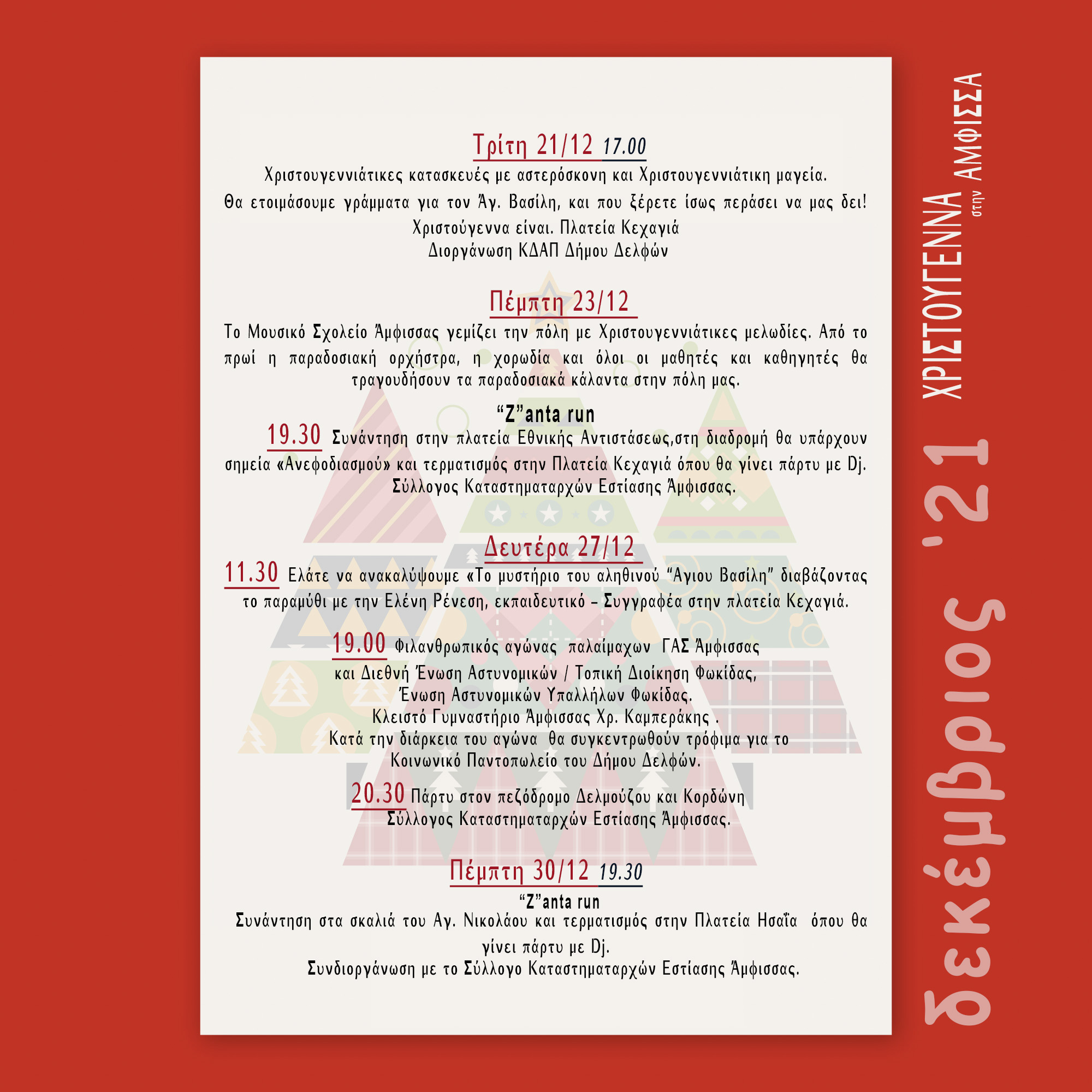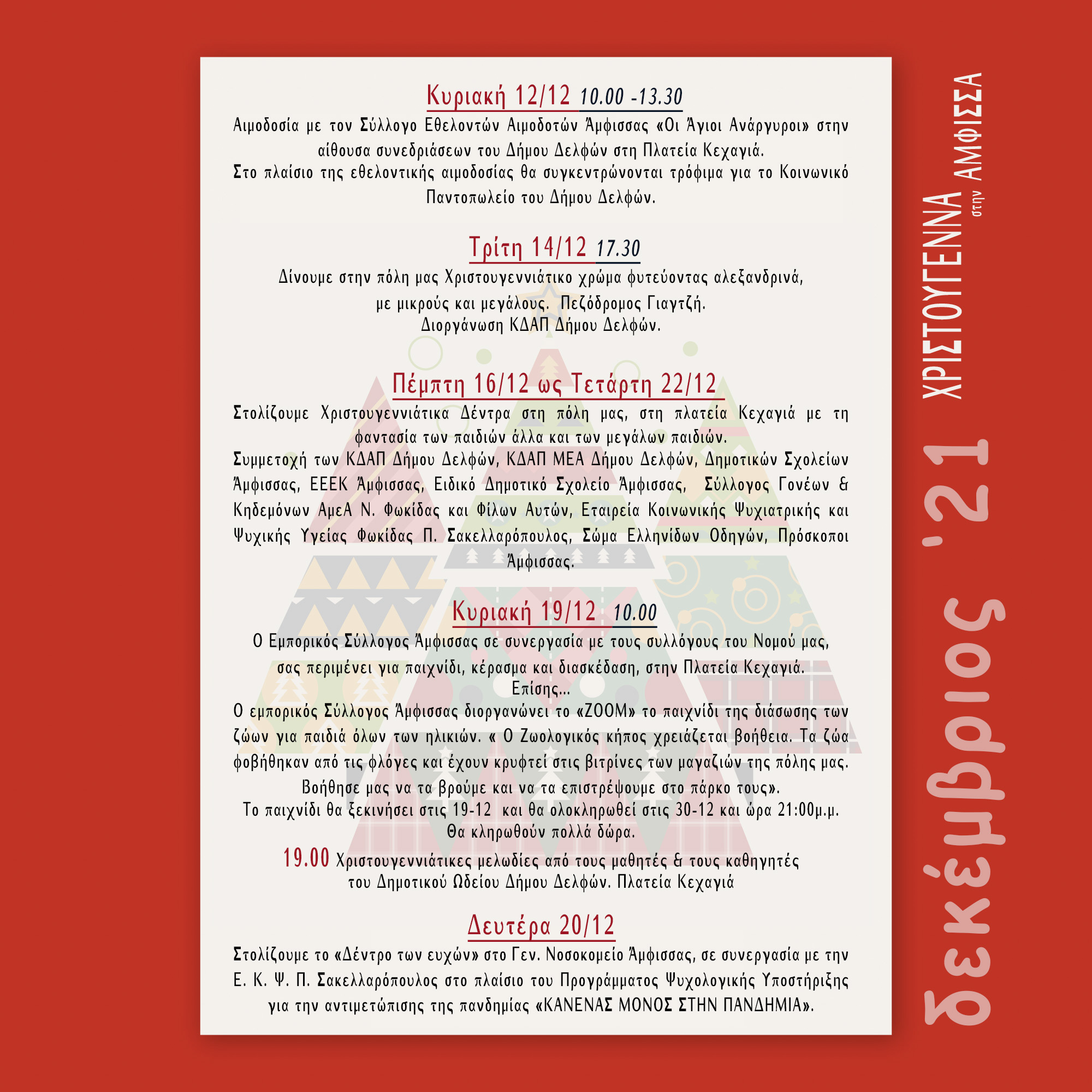Πρόγραμμα χριστουγεννιάτικων εκδηλώσεων Κοινότητας Άμφισσας